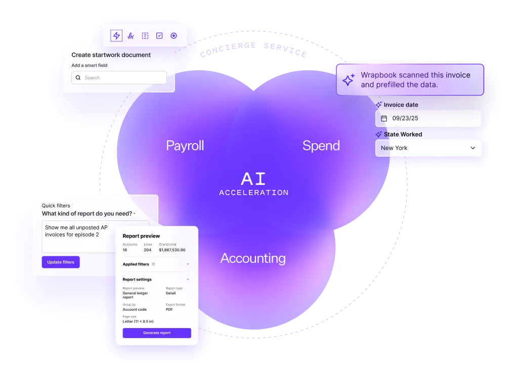 Move faster and take control of your entire production—with payroll, spend, and accounting in a single, AI-powered platform.